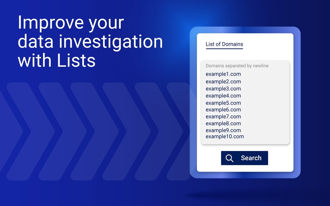 Lists functionality allows users of the DomainCrawler platform to upload the lists of domain names into the system and retrieve all the necessary information in one go instead of conducting individual lookups.